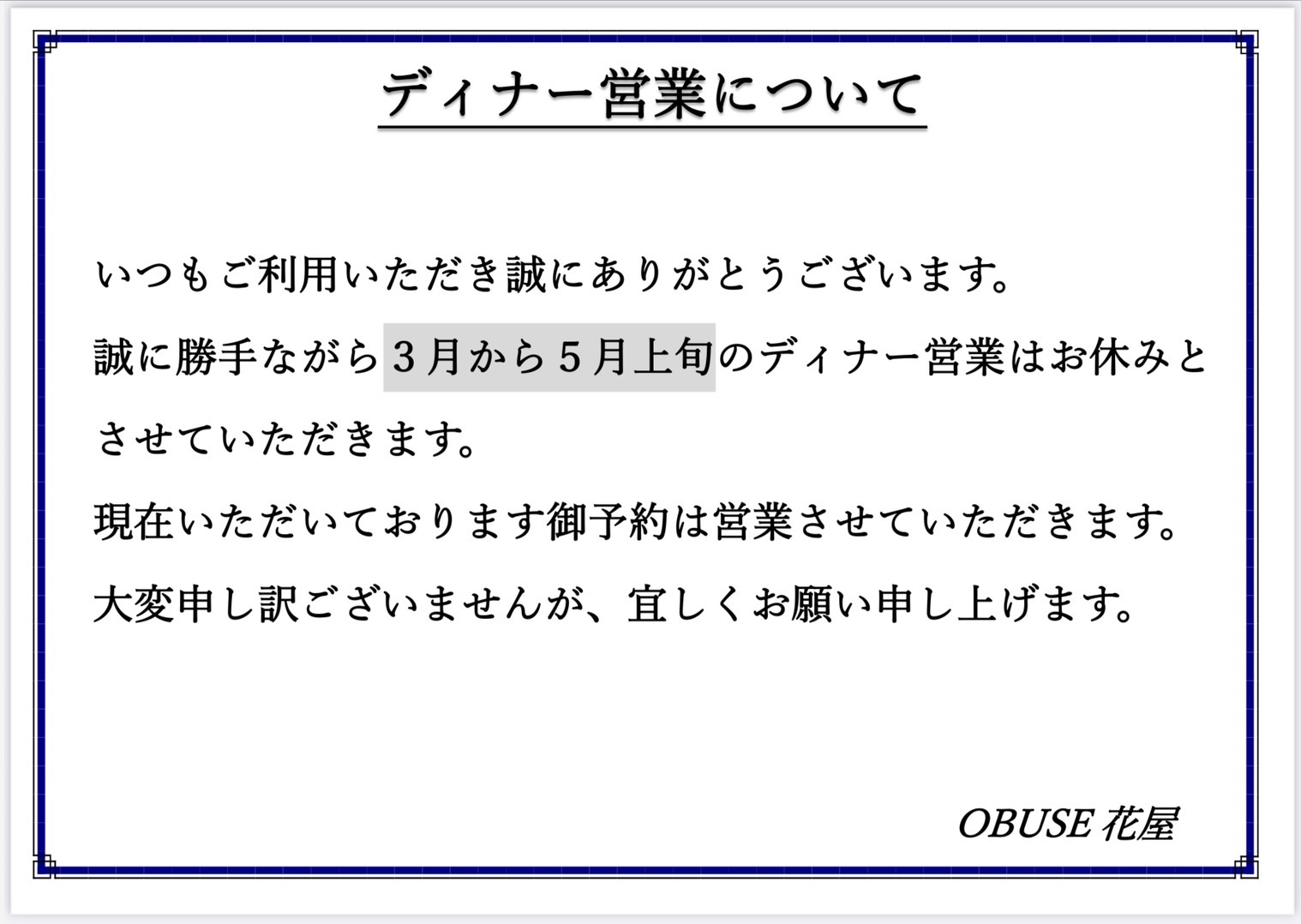 ディナー営業について